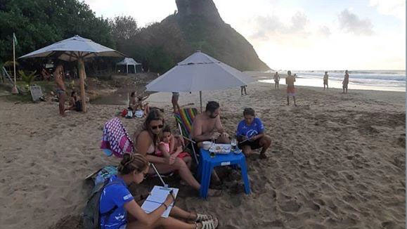 Para entender mais sobre a relação entre o turismo convencional e também o direcionado ao surfe e ao mergulho com a presença da espécie na ilha, o Projeto Golfinho Rotador está realizando duas pesquisas junto aos visitantes.