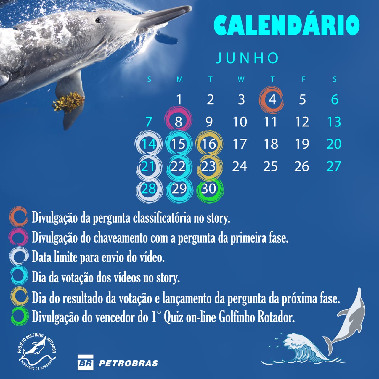 Na quinta (4) será iniciado o 1º Quiz On-line Golfinho Rotador. O tema da gincana virtual é o golfinho-rotador de Fernando de Noronha. A disputa será composta por uma fase classificatória e três eliminatórias.