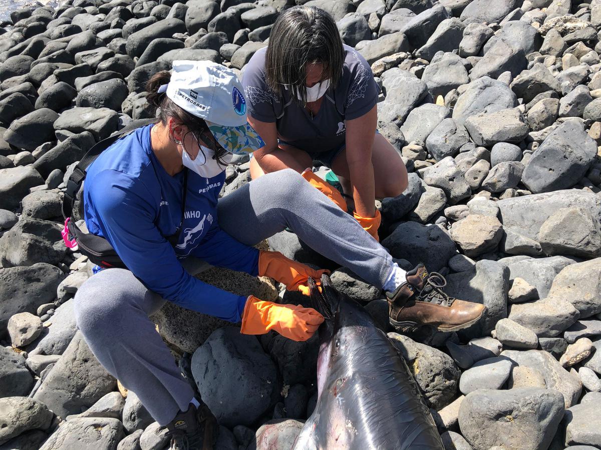 Foram usadas três metodologias diferentes para definir o sexo dos golfinhos que acompanham embarcações: por identificação morfológica visual em barco com casco transparente, foto-identificação e caracterização genética.