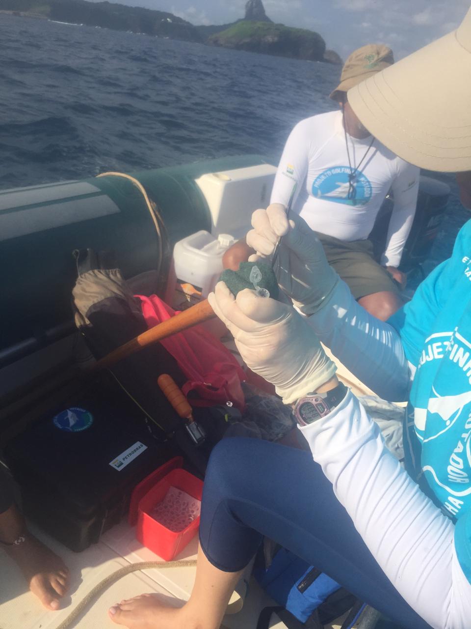 A técnica de coleta de amostras de pele dos golfinhos utilizada pelos pesquisadores causa menos impacto aos animais, pois não requer a necessidade de capturá-los, lançar dardos ou outro tipo de técnica invasiva. O método escolhido, raspagem, utiliza bastões de madeiras com um pedaço de esponja na extremidade. Assim, os pesquisadores acompanham os golfinhos em uma pequena embarcação e, com a aproximação dos golfinhos, coletam uma amostra de um dos animais por vez, com uma rápida passagem do bastão em seu dorso, raspando um pedaço de pele.