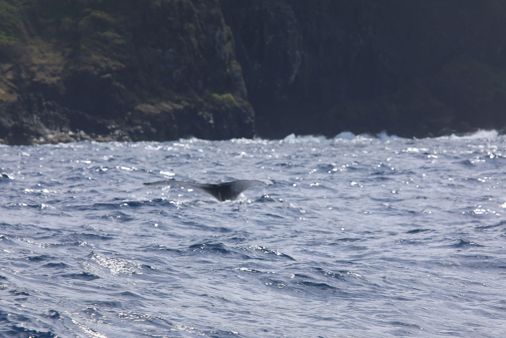 Após o mergulho, os pesquisadores se dirigiram para a Ponta da Sapata, onde no dia anterior havia sido observada a presença de um golfinho-nariz-garrafa solitário e de baleias-jubartes.