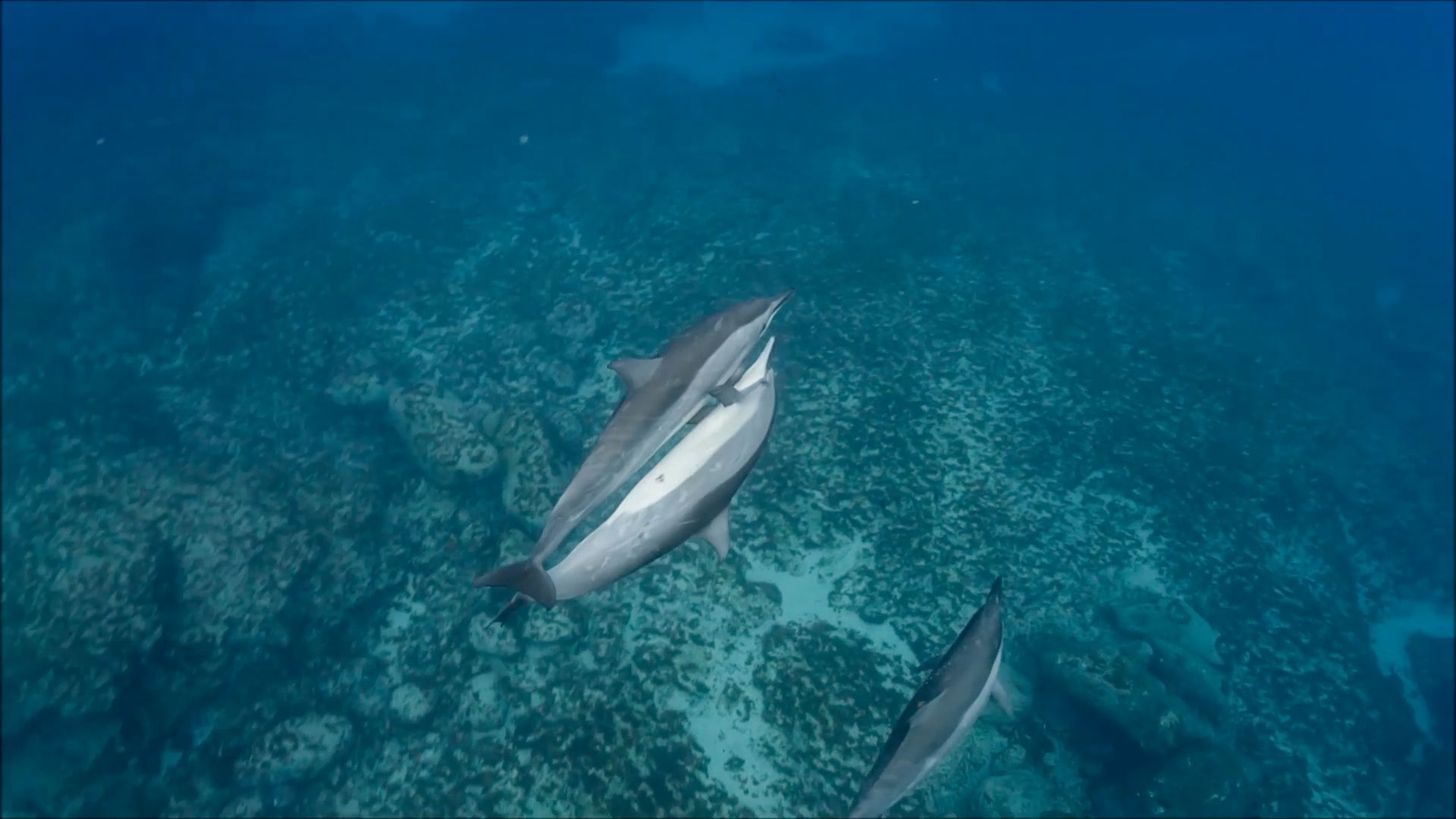 O sistema de comunicação aéreo é composto por diversos padrões de saltos e batidas com partes do corpo na superfície do mar, que produzem turbulências características quando o golfinho reentra na água.
