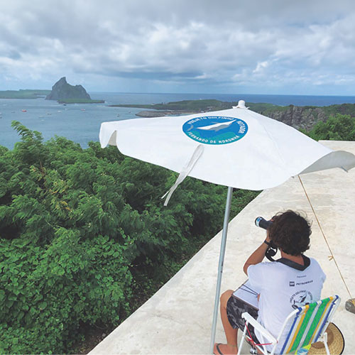 Por meio do monitoramento realizado no Mirante dos Golfinhos e no Forte de Nossa Senhora dos Remédios, de segunda a sexta.